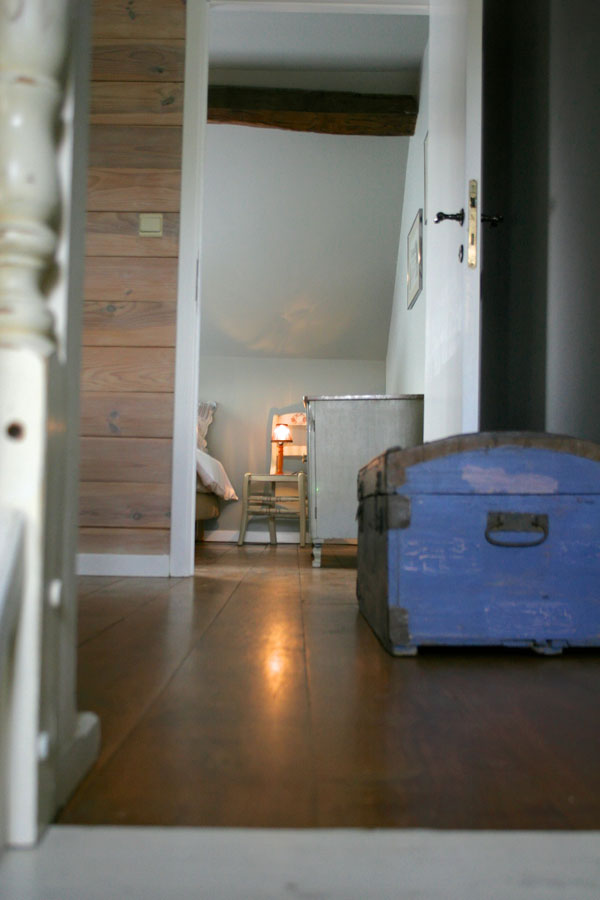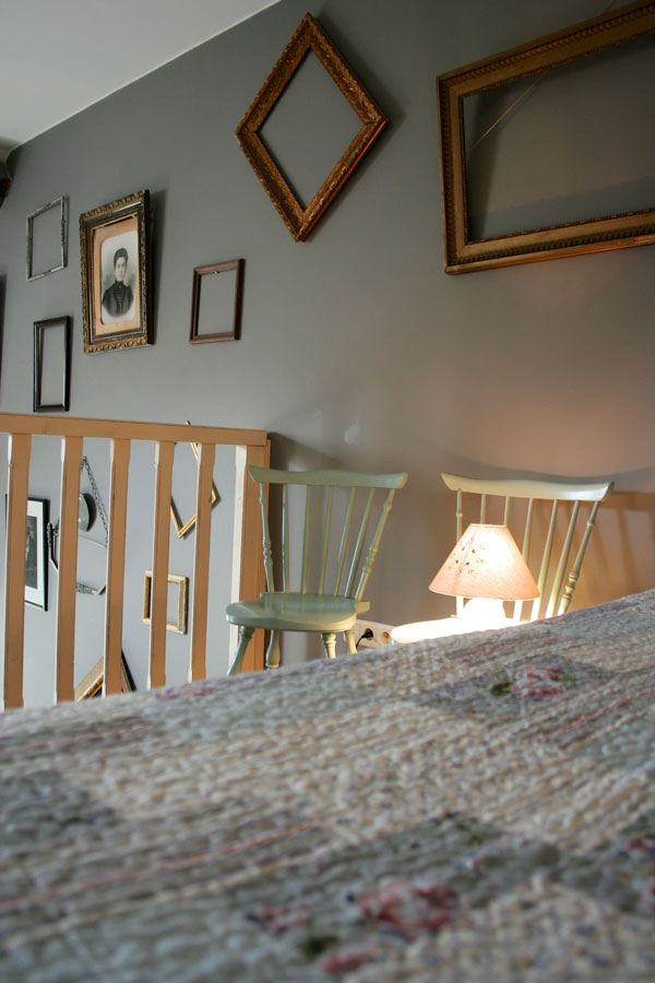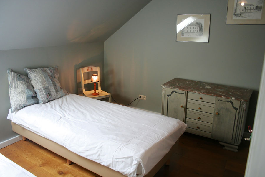 A l’étage, une chambre avec deux lits d’une personne, une mezzanine avec lit gigogne (2x1p)